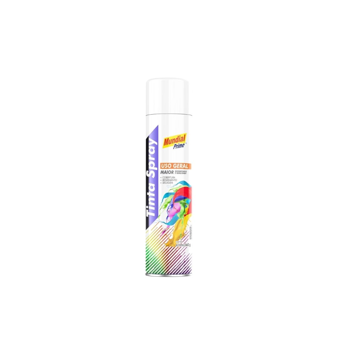 A TINTA SPRAY USO GERAL MUNDIAL PRIME oferece acabamento uniforme para artesanatos, decorações, reparos e uso profissional. Aplique em madeira, metal, gesso, alvenaria ou cerâmica não vidrada. Indicada para pinturas em geral.